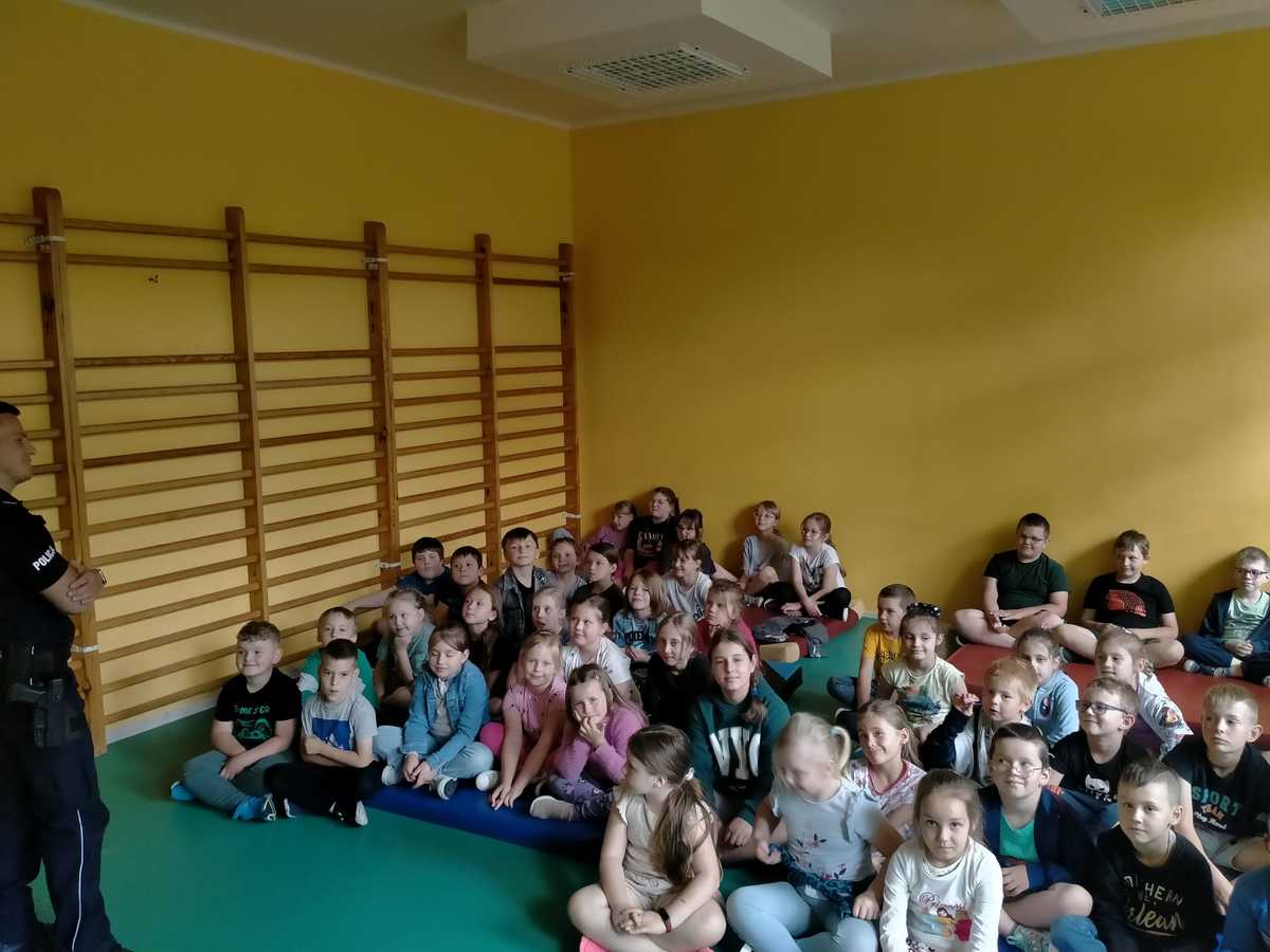 Dzielnicowi spotykają się z dziećmi w ramach działań profilaktycznych " Bezpieczne Wakacje". Podczas pogadanek, mundurowi przypominają najmłodszym zasady bezpieczeństwa w szkole, w domu, podczas czasu wolnego, a także poruszania się po drodze i w cyberprzestrzeni.