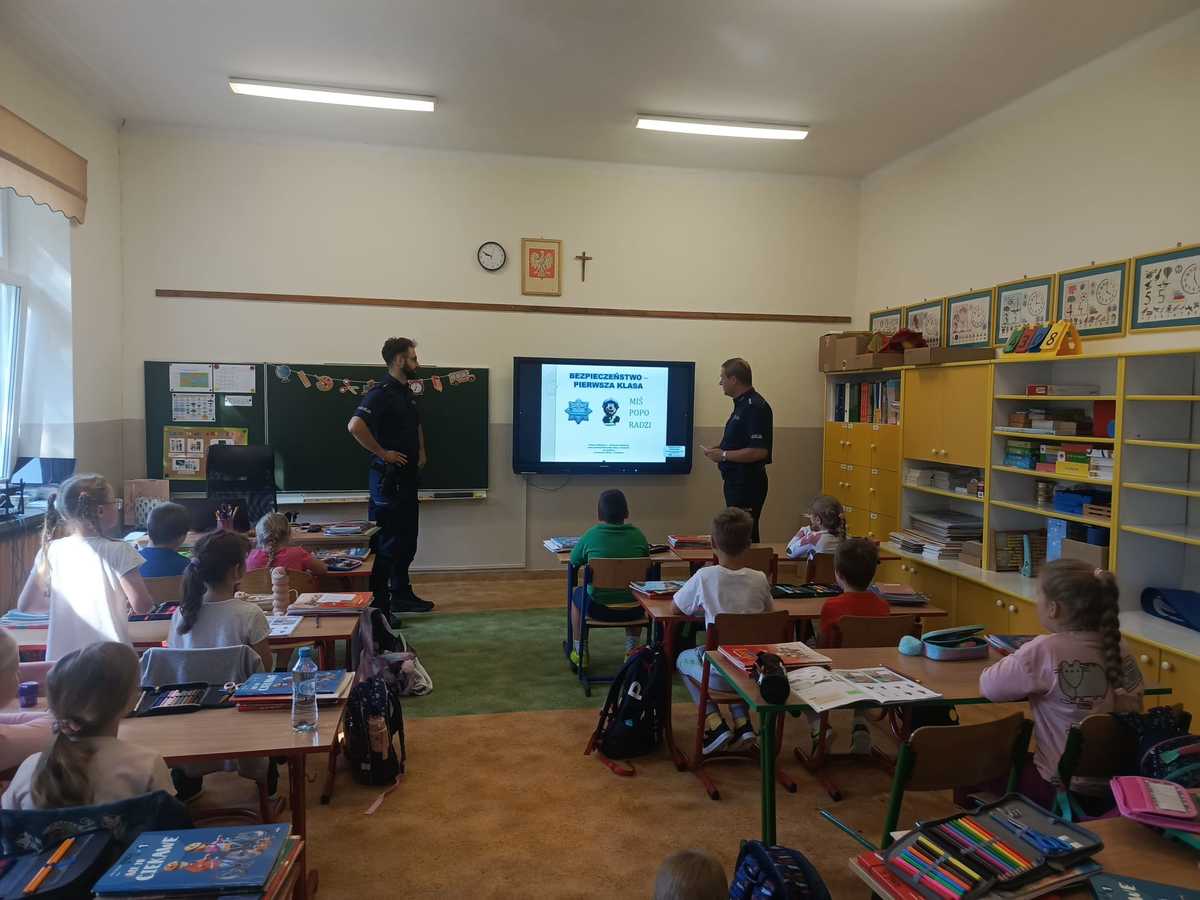 W ramach działań profilaktycznych pod nazwą „Bezpieczeństwo - pierwsza klasa”, policjanci edukują najmłodszych. Funkcjonariusze odwiedzają pierwszoklasistów z terenu powiatu sanockiego. Podczas pogadanek, mundurowi przypominają dzieciom zasady bezpieczeństwa w szkole, w domu, podczas zabawy, a także poruszania się po drodze i w cyberprzestrzeni.