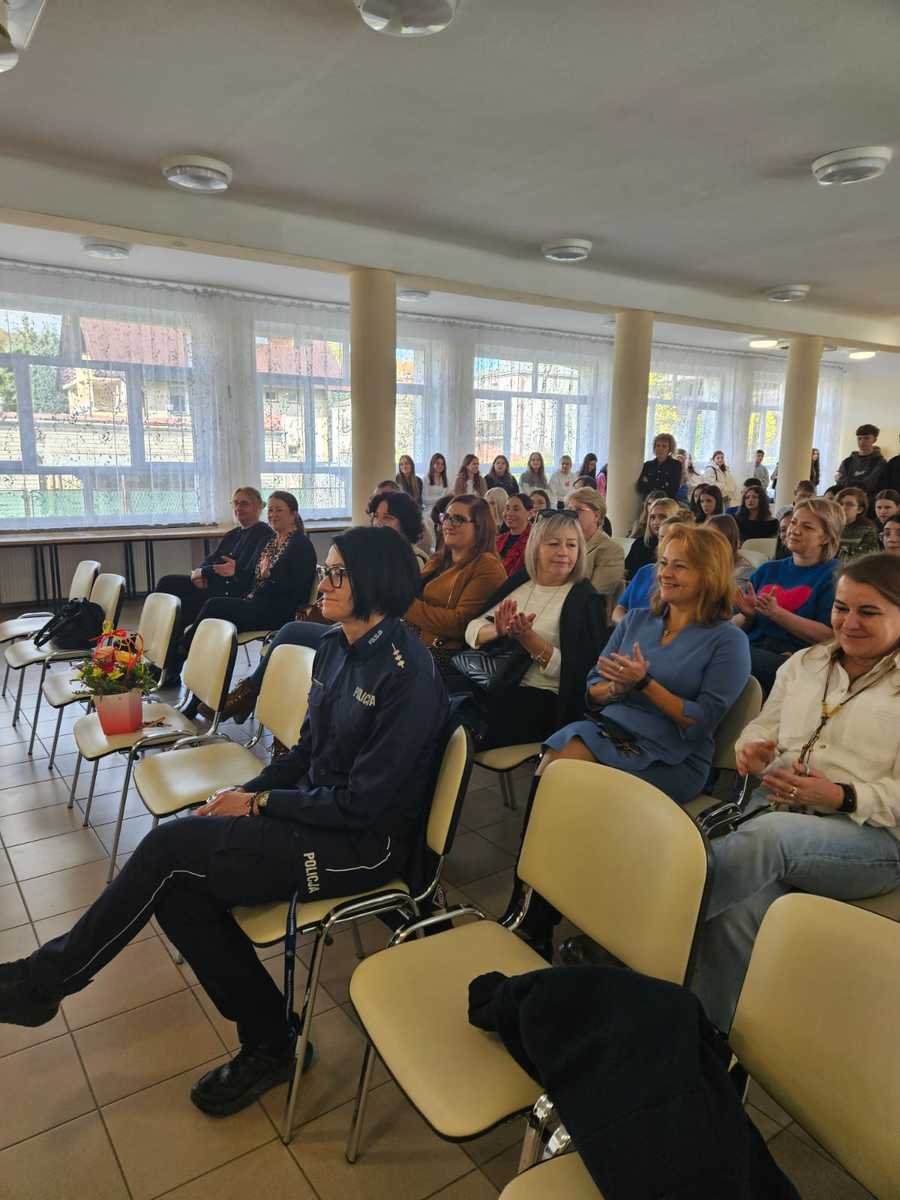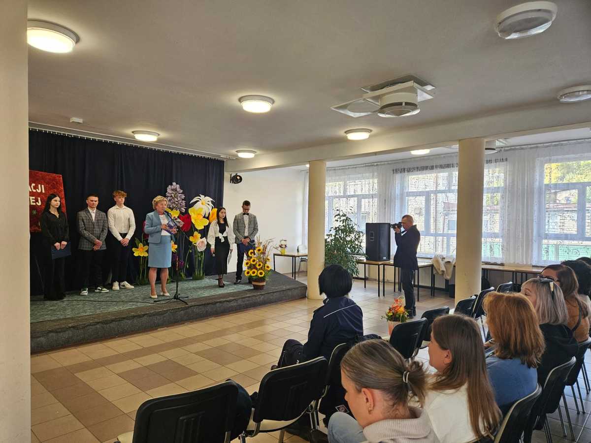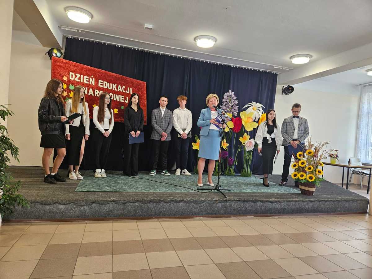 Dzień Edukacji Narodowej to okazja, aby wszystkim nauczycielom podziękować za trud wychowania i edukacji dzieci oraz młodzieży. Wczoraj w Zespole Szkół nr 5 w Sanoku, gdzie funkcjonują klasy o profilu mundurowym, odbyła się uroczysta akademia. W uroczystości wzięła udział st. asp. Helena Bober, która jest koordynatorem do spraw oddziałów o profilu mundurowym z ramienia Komendy Powiatowej Policji w Sanoku.
