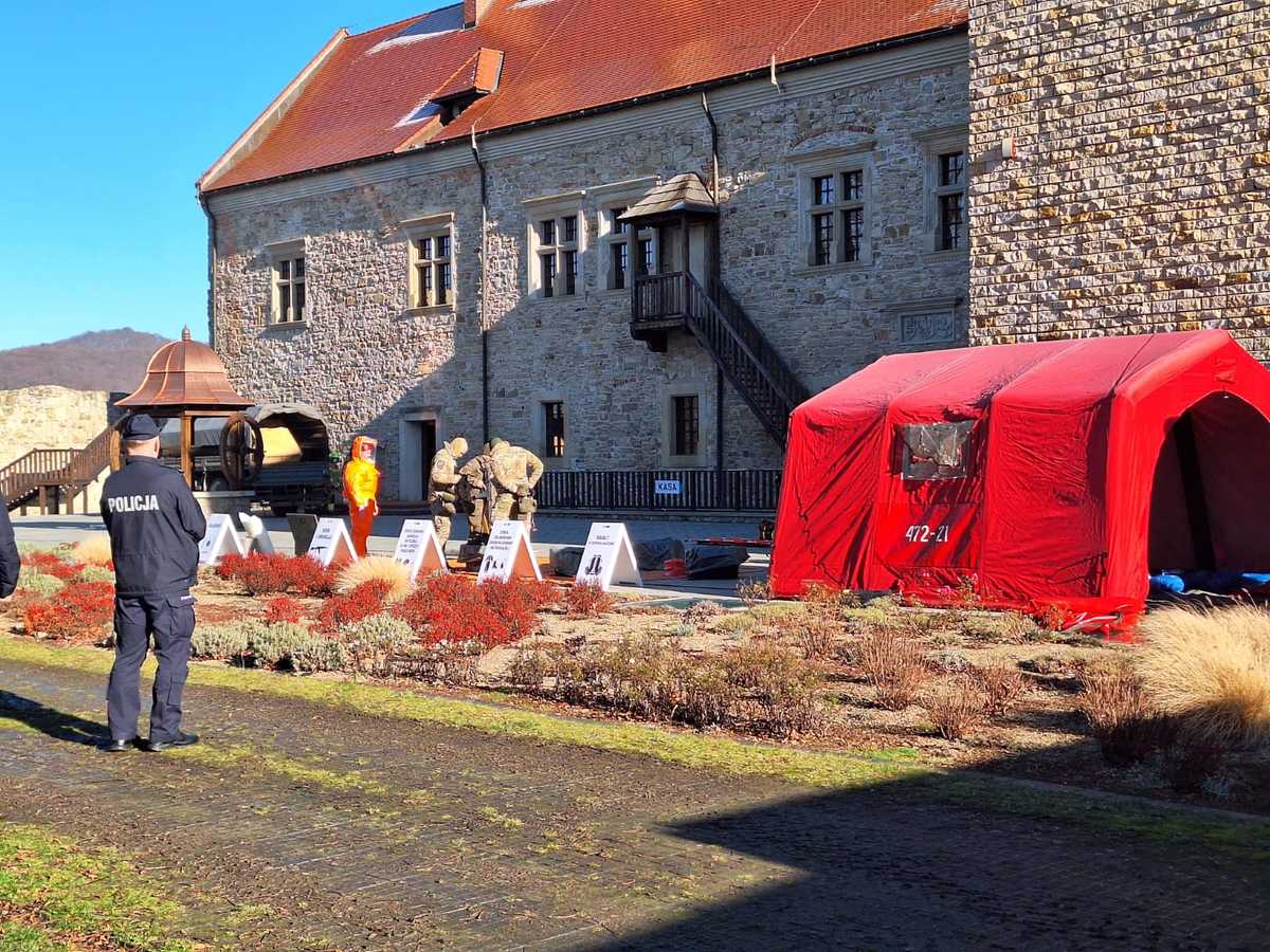 Na terenie sanockiego Muzeum Historycznego odbyły się ćwiczenia ”Alert MCI 2025”. Manewry miały na celu doskonalenie współdziałania służb odpowiedzialnych za bezpieczeństwo i zarządzanie kryzysowe w sytuacji wystąpienia działań o charakterze terrorystyczno - dywersyjnym na terenie obiektów użyteczności publicznej.