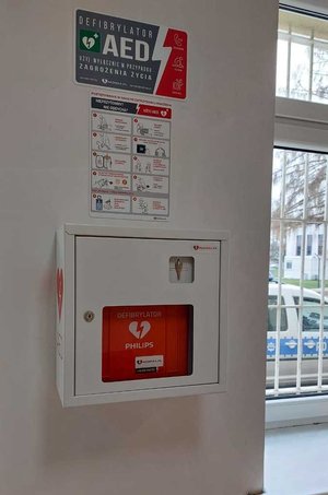 Defibrylator AED w budynku sanockiej komendy