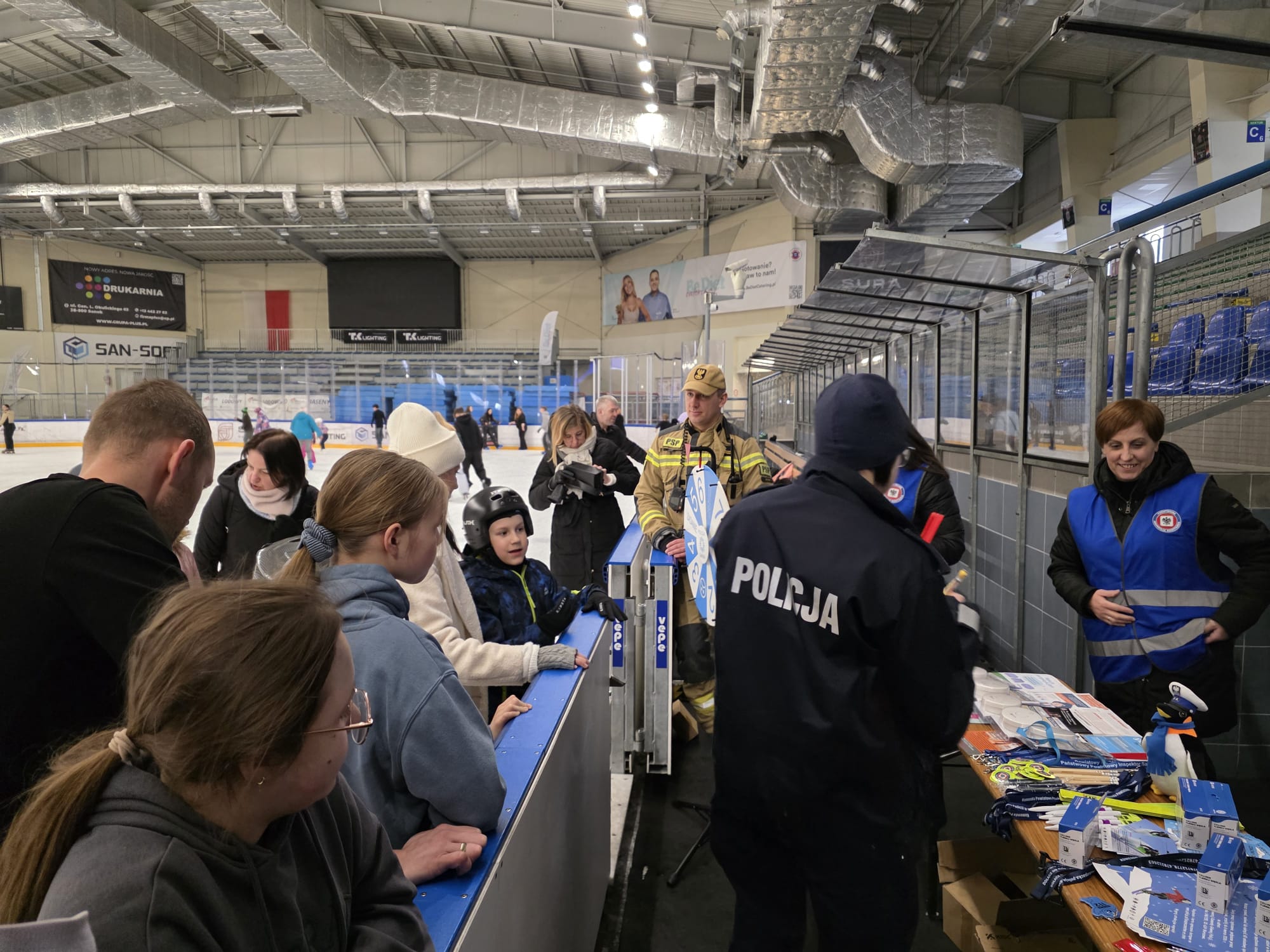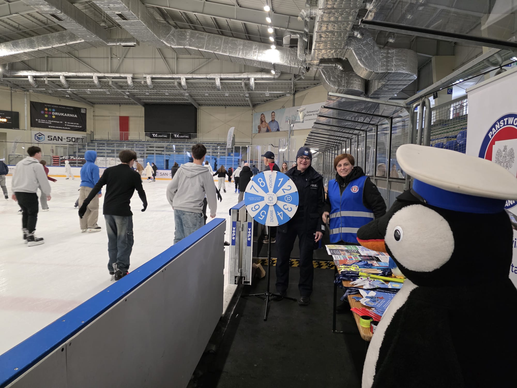 Przedwczoraj policjantki zajmujące sie profilaktyką w sanockiej komendzie w ramach akcji „Kręci mnie bezpieczeństwo w zimie”, przeprowadzały na sanockim lodowisku działania profilaktyczno - edukacyjne dotyczące bezpiecznego spędzania aktywności zimowych. W działaniach wzięły udział pracownice sanockiej Stacji Sanitarno- Epidemiologicznej oraz strażacy z Komendy Powiatowej Państwowej Straży Pożarnej w Sanoku. Przedsięwzięcie było znakomitą okazją aby przypomnieć dzieciom i młodzieży o podstawowych zasadach bezpieczeństwa, które pozwalają uniknąć niebezpiecznych sytuacji i kontuzji. Ważnym elementem działań, który cieszył się dużą popularnością wśród uczestników, był edukacyjny konkurs i zabawy, które sprawdzały i utrwalały wiedzę dzieci na temat bezpieczeństwa.