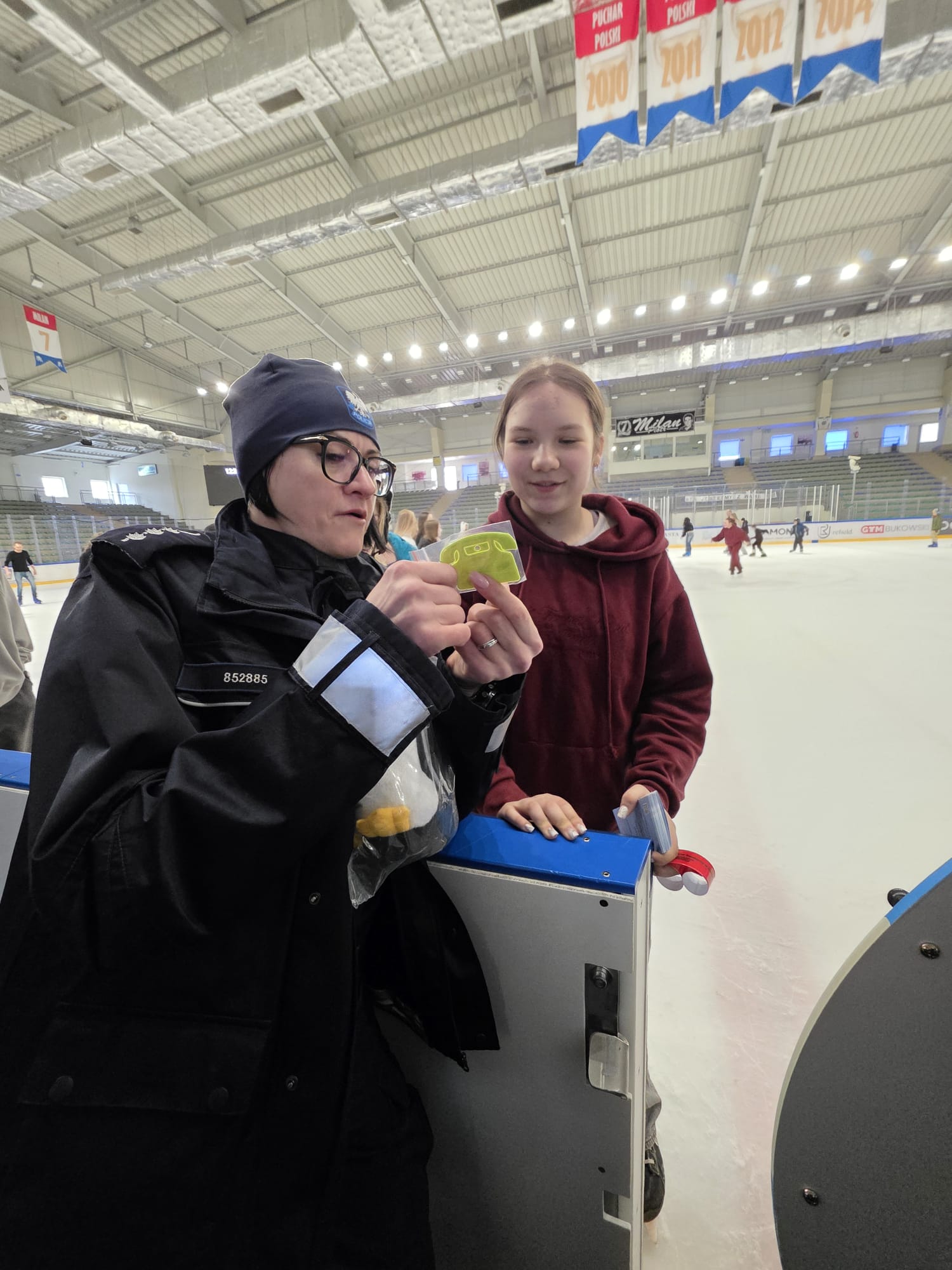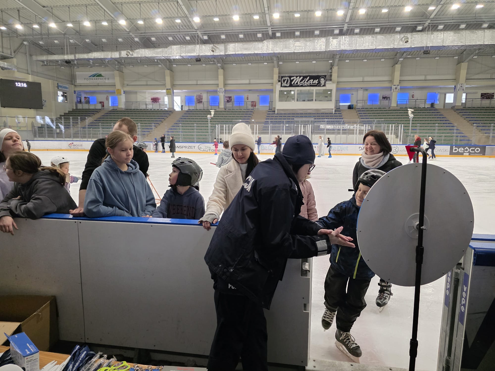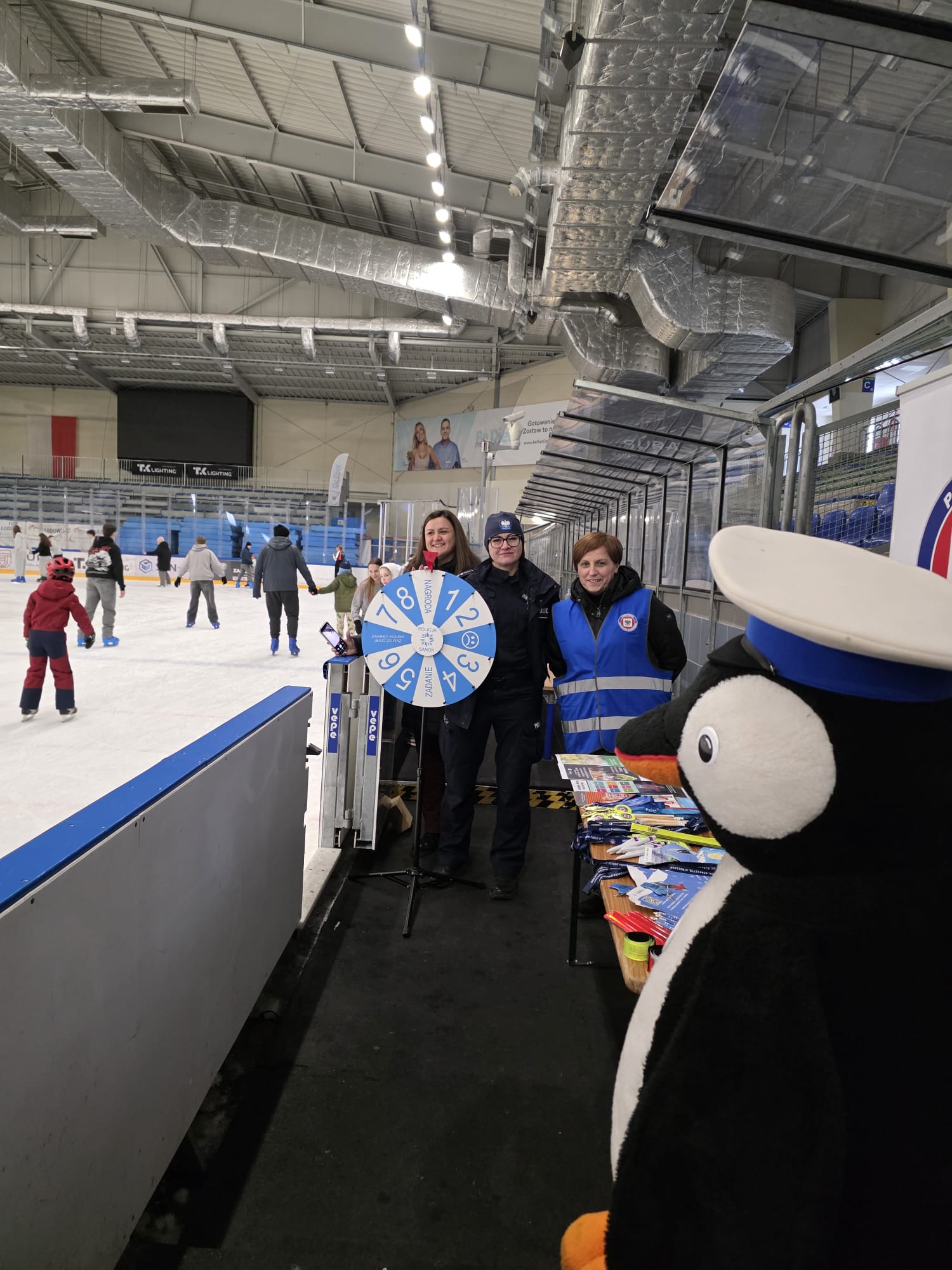 Istotnym elementem wydarzenia była również promocja konkursu „Zimowy Dekalog”, który zachęca dzieci i młodzież do poznawania oraz utrwalania zasad bezpiecznego spędzania czasu zimą. Mundurowi wyjaśniali zasady udziału w konkursie i podkreślali, jak ważne jest przestrzeganie podstawowych reguł bezpieczeństwa podczas ferii. Policjanci przeprowadzili konkursy na lodzie oraz przy stanowisku profilaktycznym.