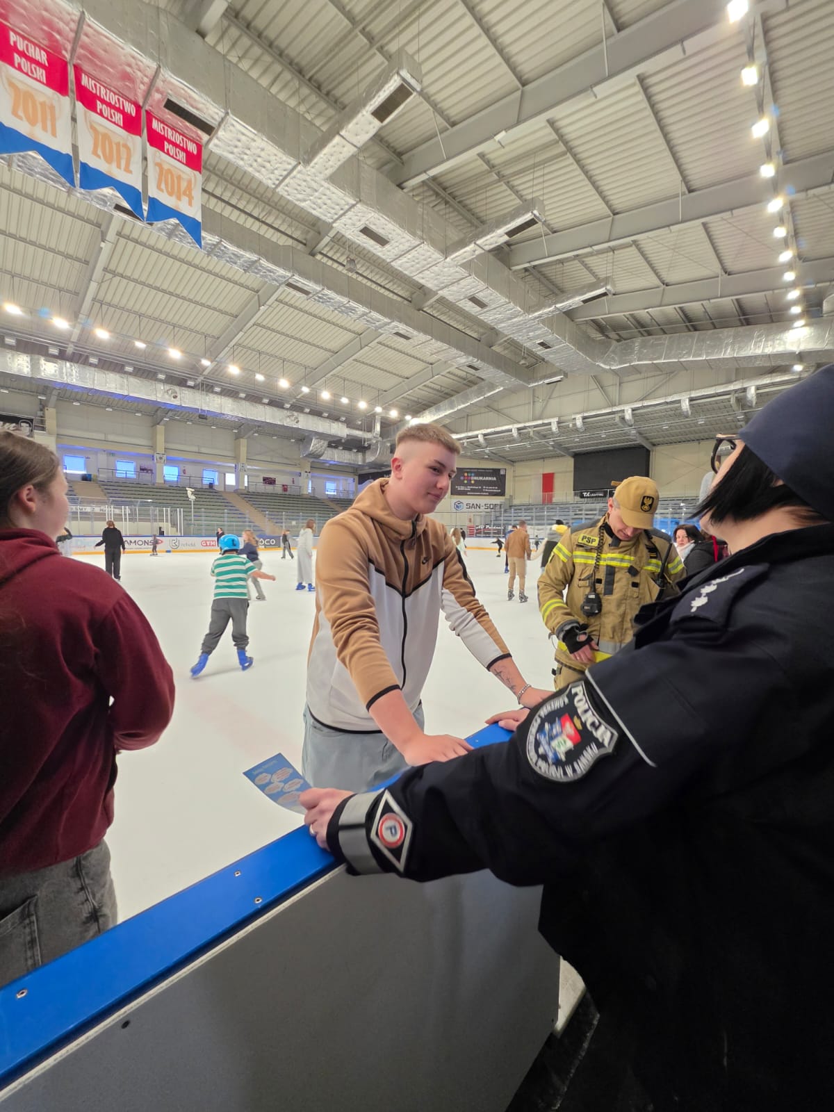 W ramach ogólnopolskiej akcji „Kręci mnie bezpieczeństwo w zimie", w ubiegłym tygodniu na lodowisku MOSiR, odbyło się kolejne wydarzenie poświęcone promowaniu bezpiecznych zachowań podczas zimowego wypoczynku. Inicjatywa miała na celu zwiększenie świadomości dzieci, młodzieży oraz dorosłych na temat zagrożeń związanych z zimowymi zabawami oraz naukę odpowiedzialnych postaw w czasie ferii zimowych.