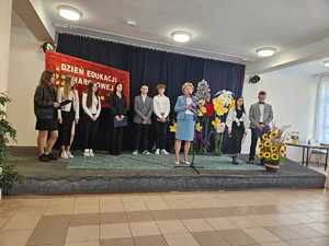 Dzień Edukacji Narodowej to okazja, aby wszystkim nauczycielom podziękować za trud wychowania i edukacji dzieci oraz młodzieży. Wczoraj w Zespole Szkół nr 5 w Sanoku, gdzie funkcjonują klasy o profilu mundurowym, odbyła się uroczysta akademia. W uroczystości wzięła udział st. asp. Helena Bober, która jest koordynatorem do spraw oddziałów o profilu mundurowym z ramienia Komendy Powiatowej Policji w Sanoku.